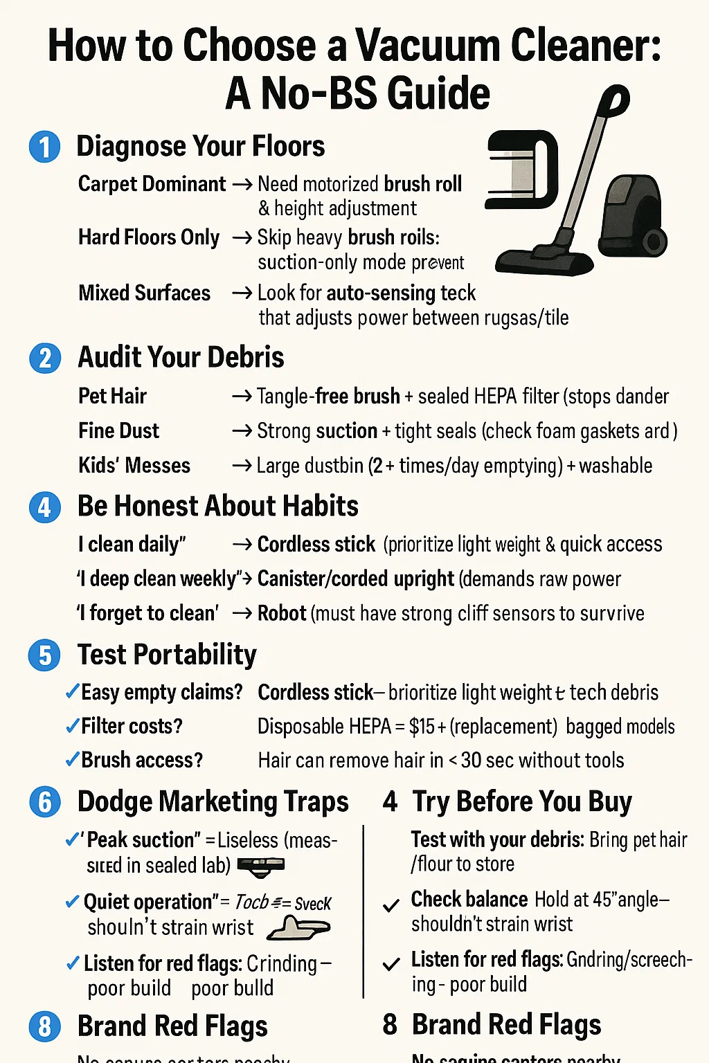 Výšky nábytku? → Nízkoprofilové hlavy se čistí pod pohovkami (<10 cm).